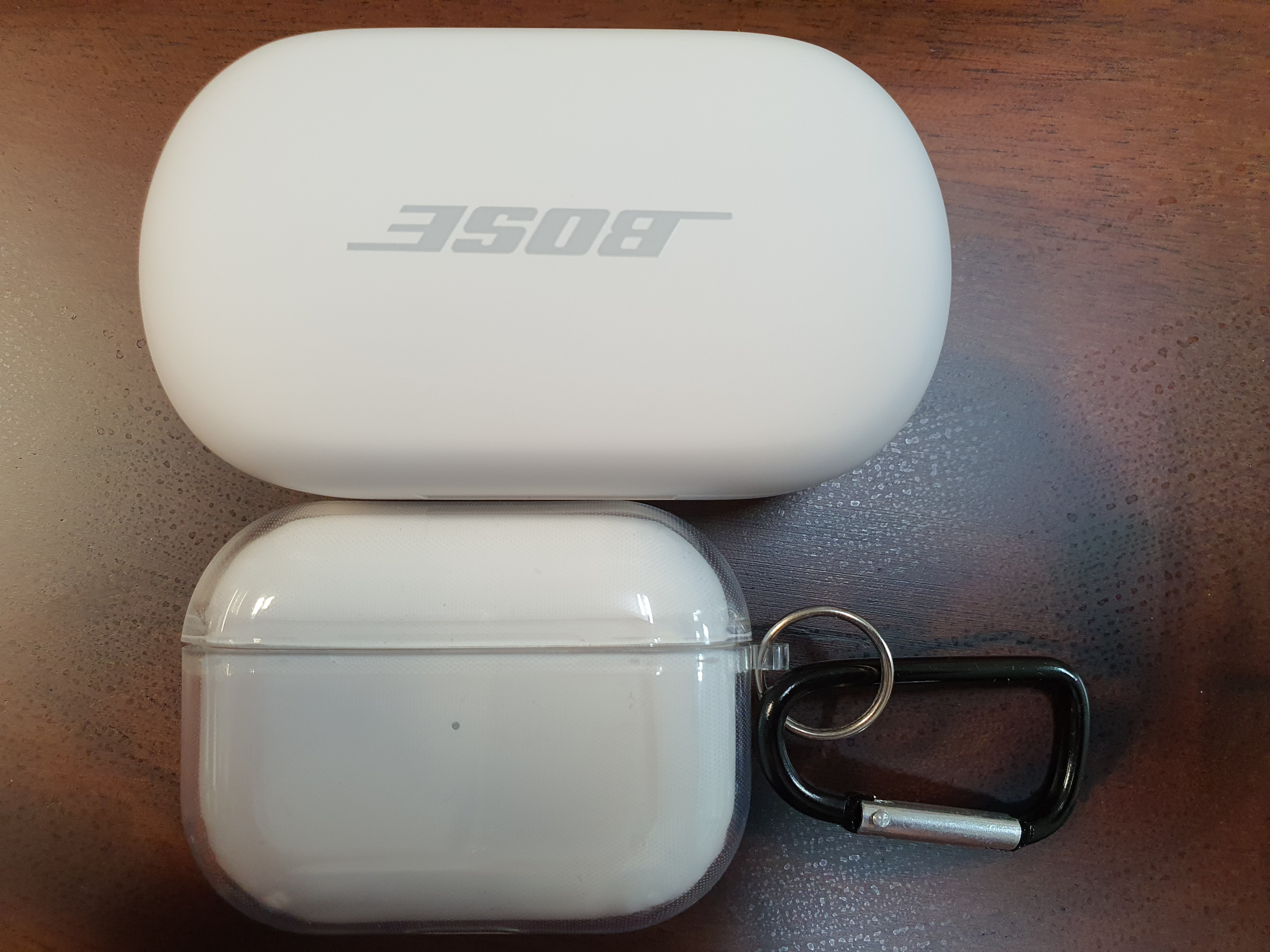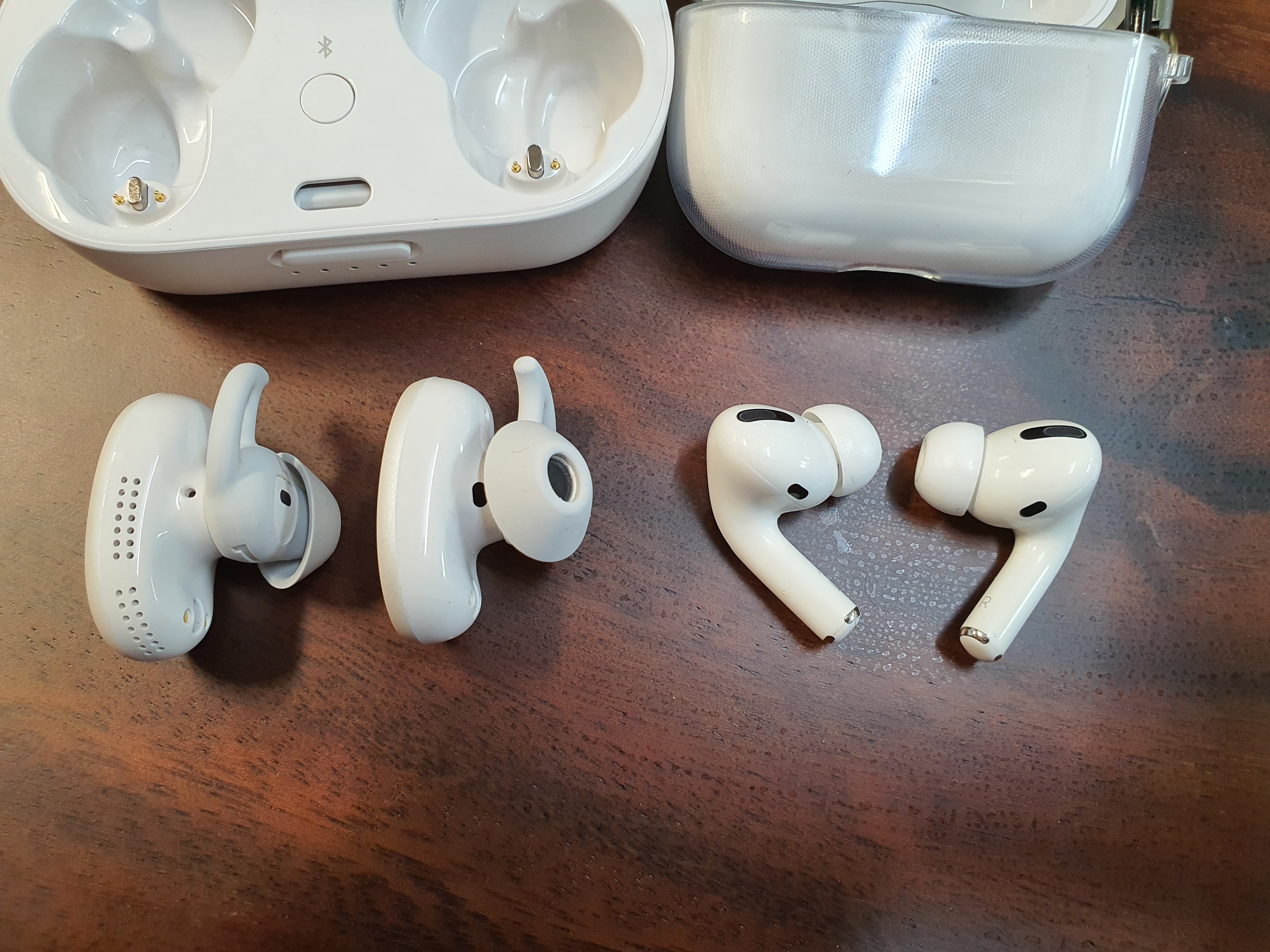 가로크기 비교! 에어팟 프로 보호케이스를 장착하였는데도 불구하고 크기 차이가 남을 볼 수 있습니다.