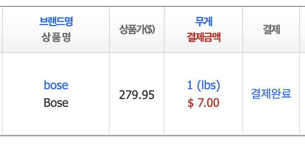 보스공식 홈페이지에서 279.95 usd 로 구매하였으며, 미국 비대지 2fasts를 이용하여 (배대지 요금 약 7달러)