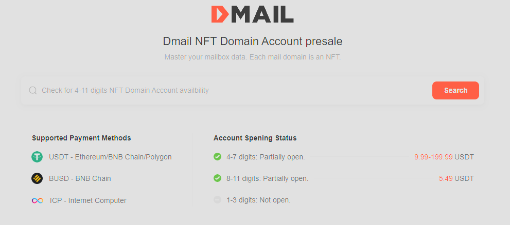영구적이고 안전한 즐겨찾는 Dmail NFT 도메인 계정을 선택하세요.